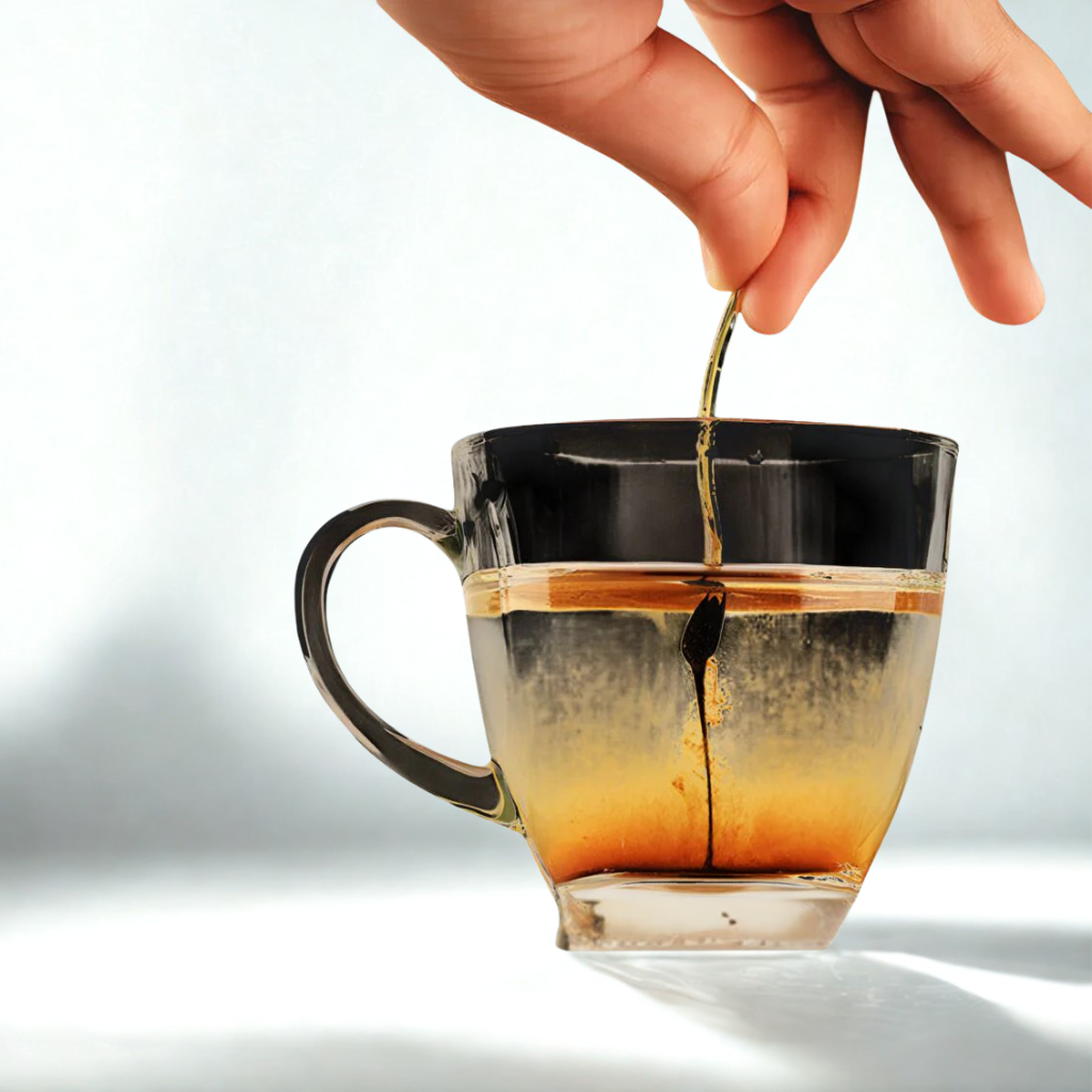 Take a pea-sized amount of resin and dissolve it in warm water, tea, or coffee.
