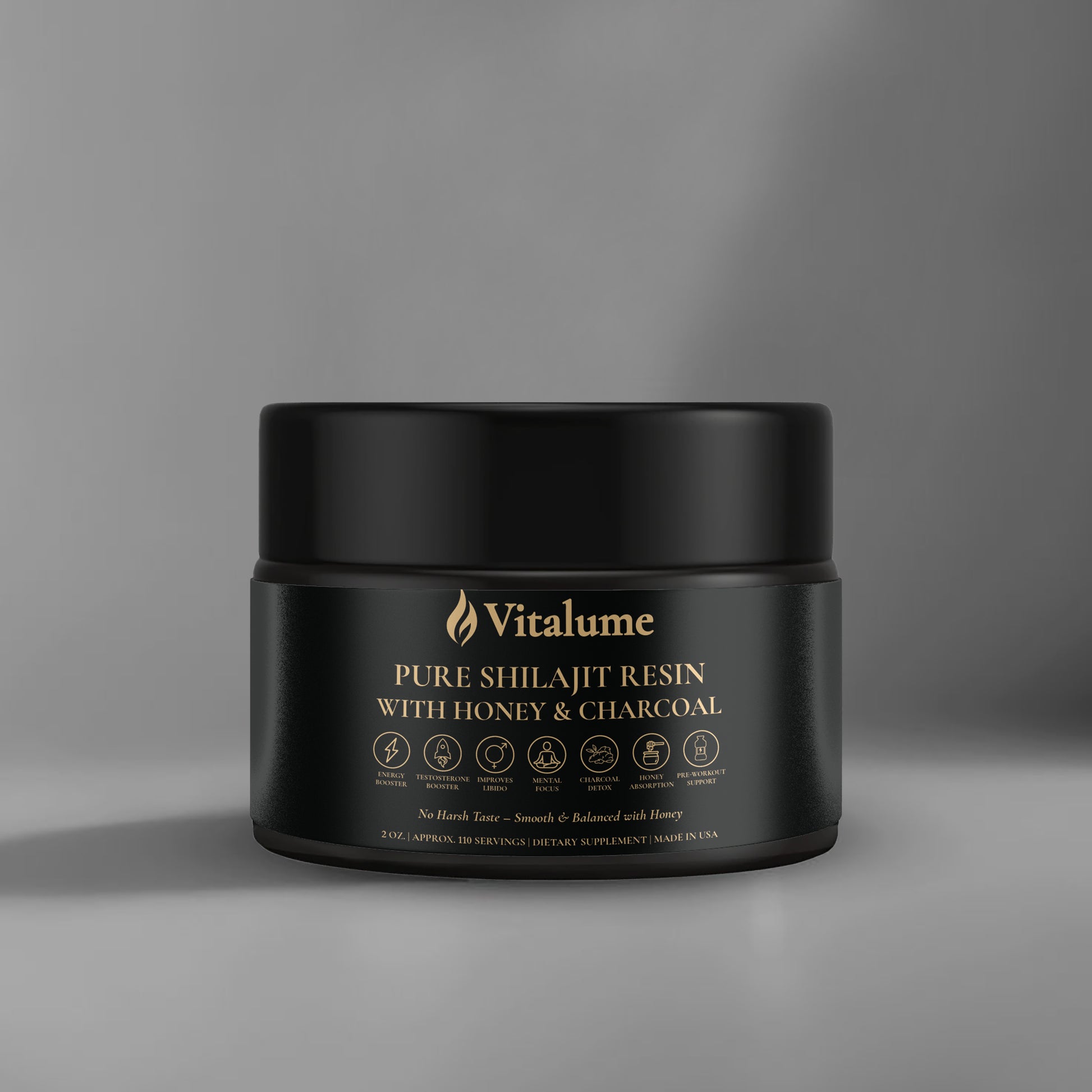 Discover the ancient wellness secret with Vitalume Pure Shilajit Resin, sourced from the pristine Himalayan mountains. This premium formula is infused with natural honey for smooth taste and charcoal for added detox benefits. Delivering purity, potency, and tradition in every serving.